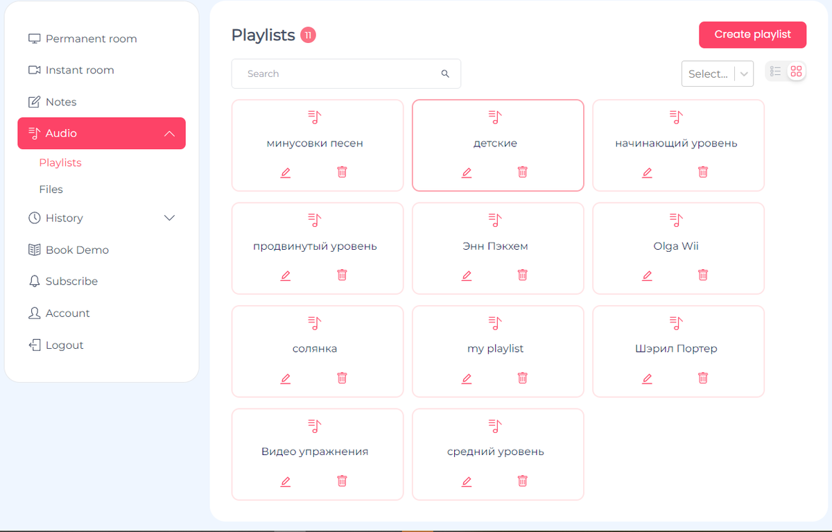 - Создавайте уникальные индивидуальные плейлисты упражнений для каждого ученика или уровня сложности, доступ к которым будет только у вас.